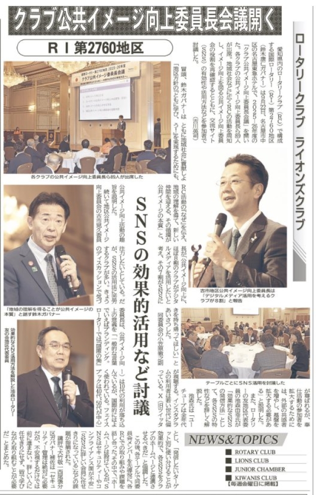 クラブ公共イメージ向上委員長会議の様子が中部経済新聞に掲載されました。